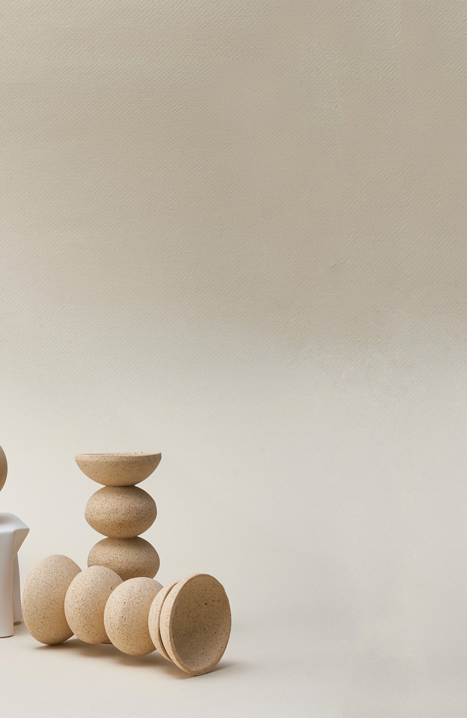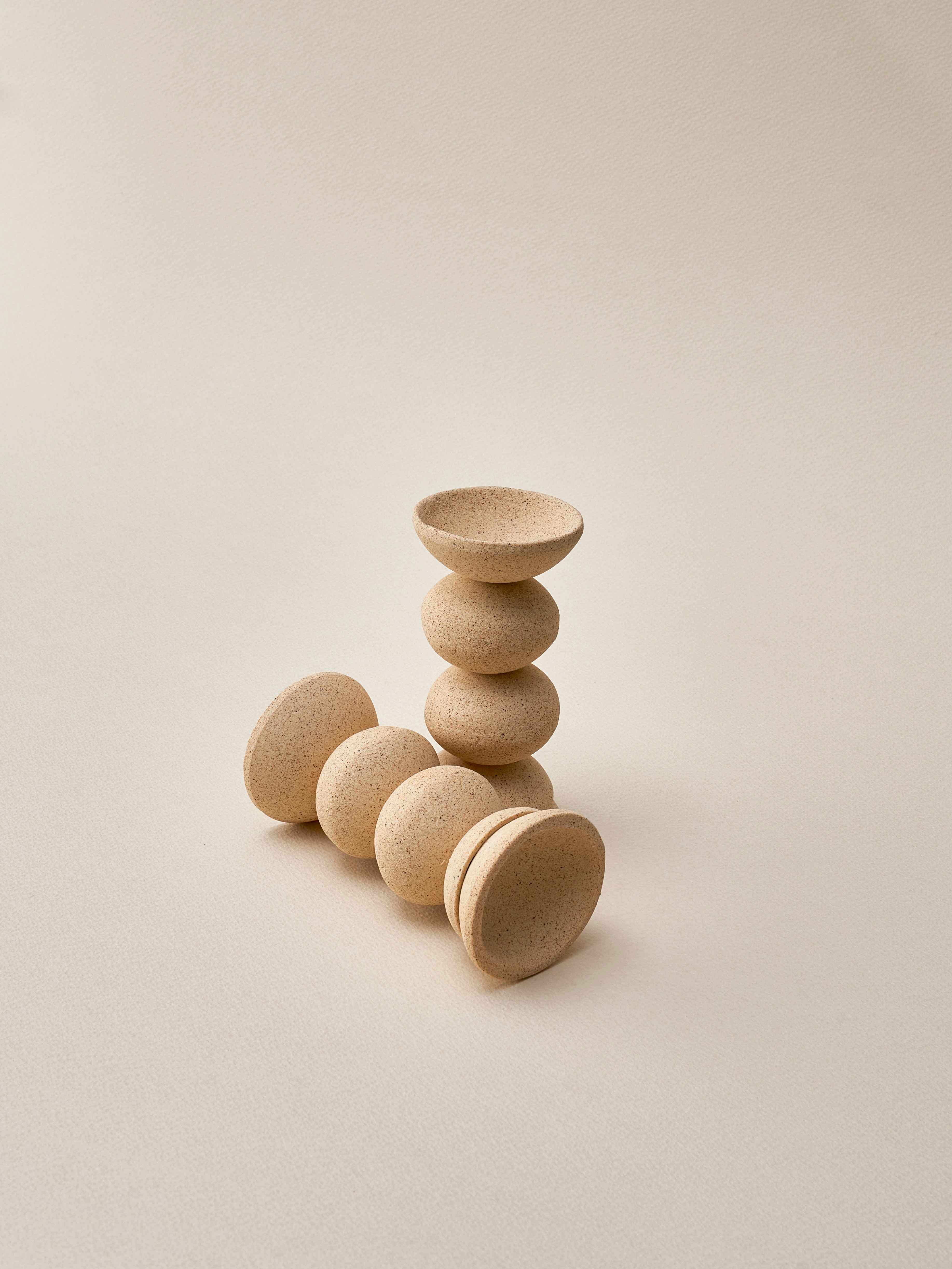 Unglazed surfaces reveal the raw, natural texture of the clay, emphasizing the simplicity of circular forms.